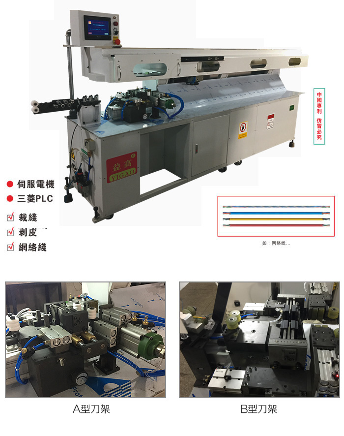 Dongguan Yigao Machinery Company Limited was established in 1996. With the company staff persistent pursuit and tireless efforts, Yigao has independently researched, and has developed wire cable extrusion machine (core wire extrusion machines, outer sheath extrusion machine, Teflon extrusion machine, chemical foaming extrusion machine, physical foaming extrusion machines, optical fiber jacket extrusion machine ...), wire and cable twist machine (single spin twist machine, single spin-arm twist machine, vertical single spin twist machine, double-twist machine, arched twist machine, cage twist machine, winding machine ...), paper packaging machine (single, double-deck vertical paper packaging machine, single, double-deck horizontal paper packaging machine), and etc., it successfully solves the difficulties for specialty wire and cable production, and resolve automation problems regarding automatic cutting and peeling for wire and cable, terminal automatic riveting problems. Have launched a number of high-speed computer automatic wire cutting and peeling machines (single operation up to 1m, 2m, 3m, 4m, 5m, 6m, 7m, 8m, 9m, 10m and peeling length up to 100mm, 200mm, 300mm, 400mm, 500mm mixed machine models); high-speed computer thermal wire cutting and peeling machines and computer thick cable wire cutting and peeling machine; automatic terminal riveting machine (single, double ends), and etc. . Solve the automatic wire cutting and peeling on both ends for the network cable, sheathed cable, computer wire, cable wire, power cord, data wire (containing anti-crack wire), earphone wire, electronic wire, and etc.. Even AWG2 power cord (with the conductor cross-sectional area of 33.62mm2) can quickly and easily be cut and peeled, automatic riveting for various types of terminals, improves work efficiency and creates big value.